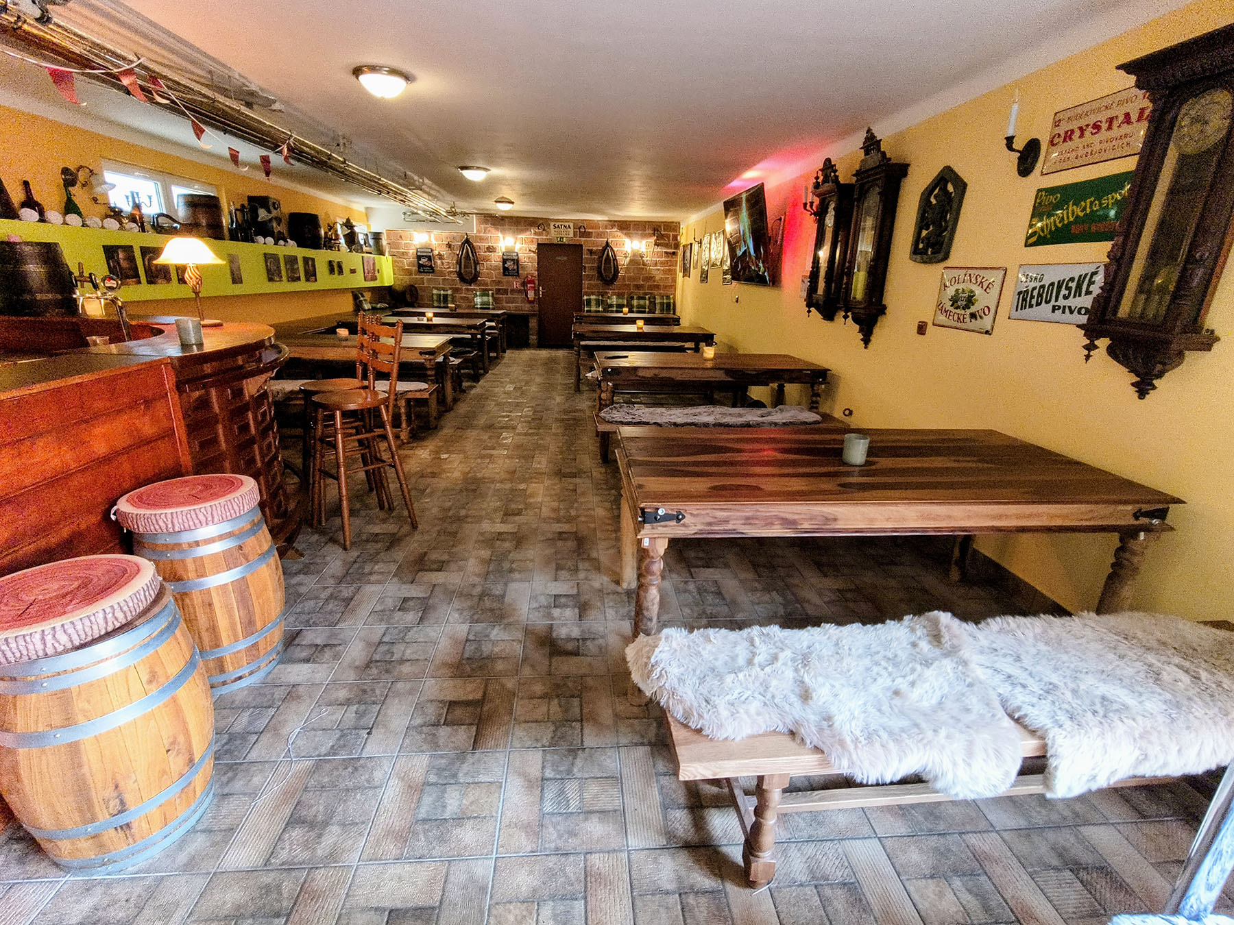 Otevřeli jsme pro Vás stylové vnitřní sklepní posezení ve vinárně, které navazuje na svou historii v původních prostorech na Stříbrném rybníku, kde tato vinárna v druhé půlce 20. století fungovala. Rádi bychom Vám nabídli příjemné strávené chvíle s přáteli s posezením až pro 60 hostů. K dispozici je Vám bar s moravskými víny, točeným pivem, limonády, pochutiny dle aktuální nabídky. K Vaší zábavě Vám bude hrát živá hudba a možnost tanečního parketu. K dispozici je Vám i velkoplošná obrazovka pro sledování sportovních zápasů nebo soukromému využití při oslavách.